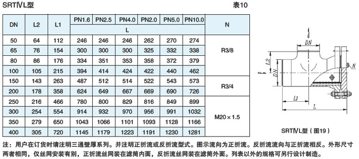 三通加长型对焊连接式(SRTⅣL型)见图19、表10(DN50~400,PN≤10.0MPa)