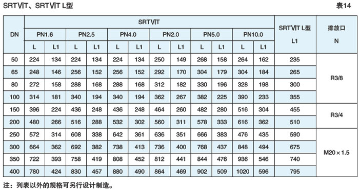 直流 T型(SRTⅥT型、直流T型加长(SRTⅥT L型)法兰连接式见图25、26,表14(DN50~400,PN≤10.0)