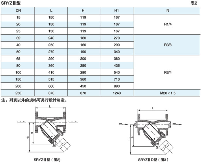 整体铸造法兰连接式(SRYZⅢ型)见图2、表2(DN15~250,PN≤5.0MPa)