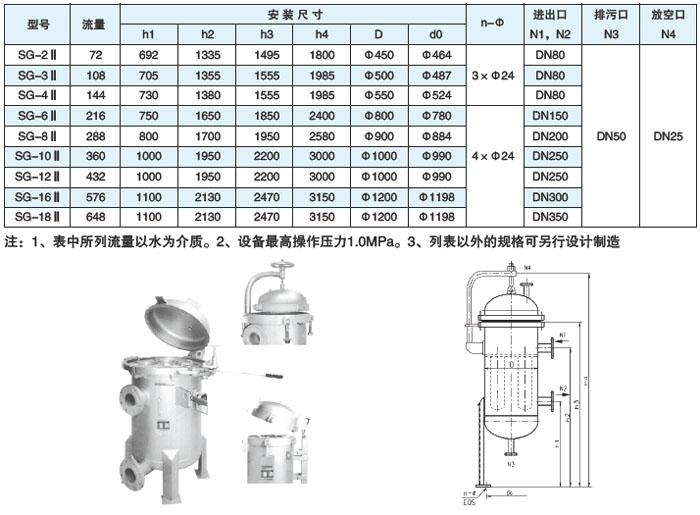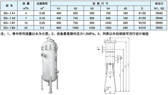 三、SG-I型单袋式精细过滤器设计参数