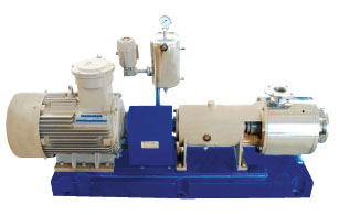 *配上贮存罐可用于连续操作的串联式工艺过程,也可用于循环往复的工艺过程,这种设计保证了所有进入混合容器的物料在退出前都必须先通过精密配合的定子和转子的间隙,抽取能力之大足以将物料抽吸上来,再顺流下去不需辅助泵,特殊的单一或双重机械密封用于强烈的工艺过程。